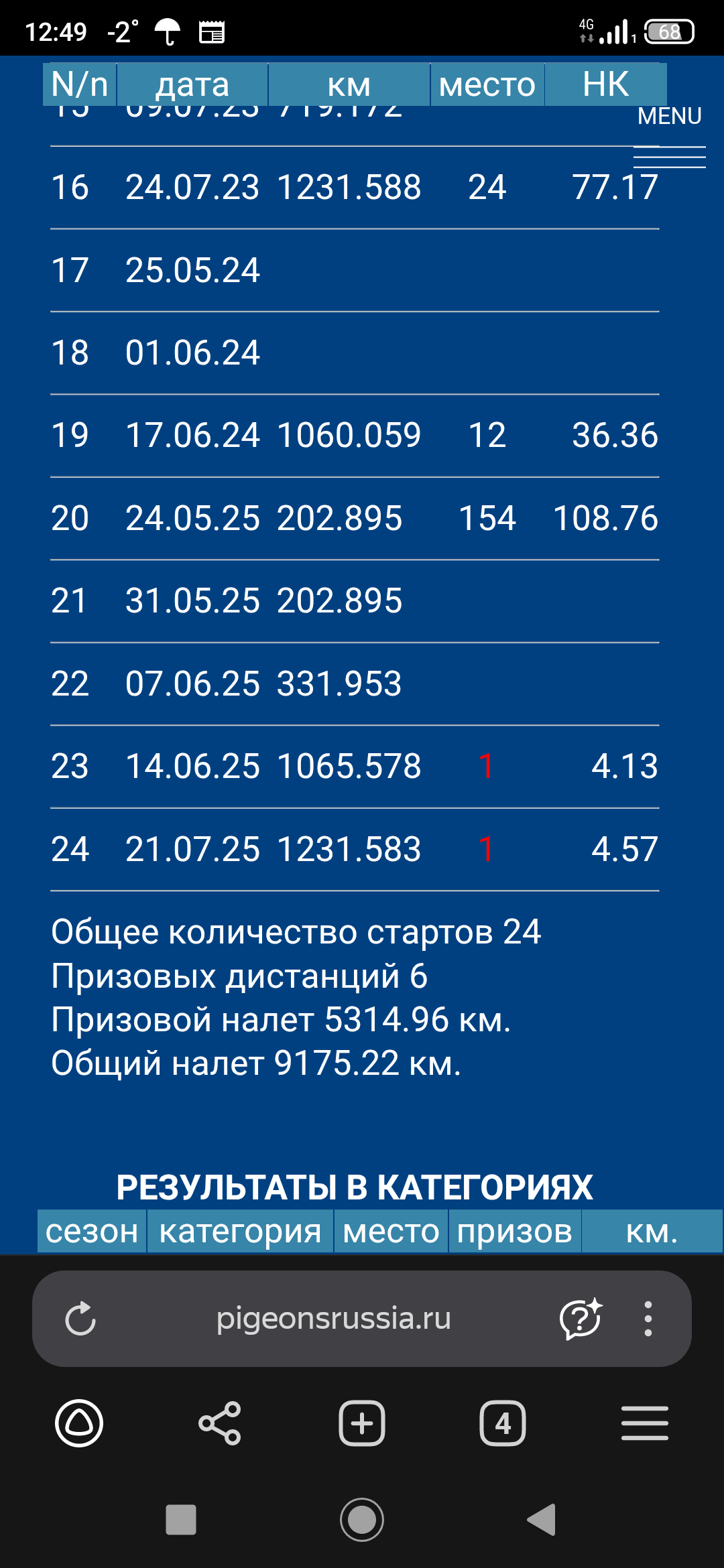 В 2025 году я каждую неделю занимал первые места, но настоящее доминирование возможно только при встречном ветре. По опыту я знаю, что передержка и дополнительные дни в корзине обычно дают нашим голубям преимущество, и те, кто лучше выдерживает, потом оказываются на высоте, но как голубевод, я не люблю такие полёты.