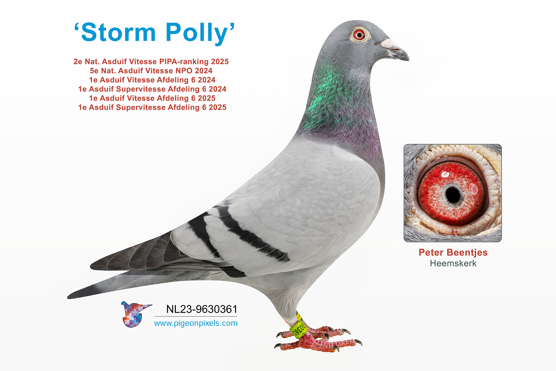 Голубь, изменивший всё, носил кольцо с номером BE12-6108355 . Мир узнал его как «Сагана» .