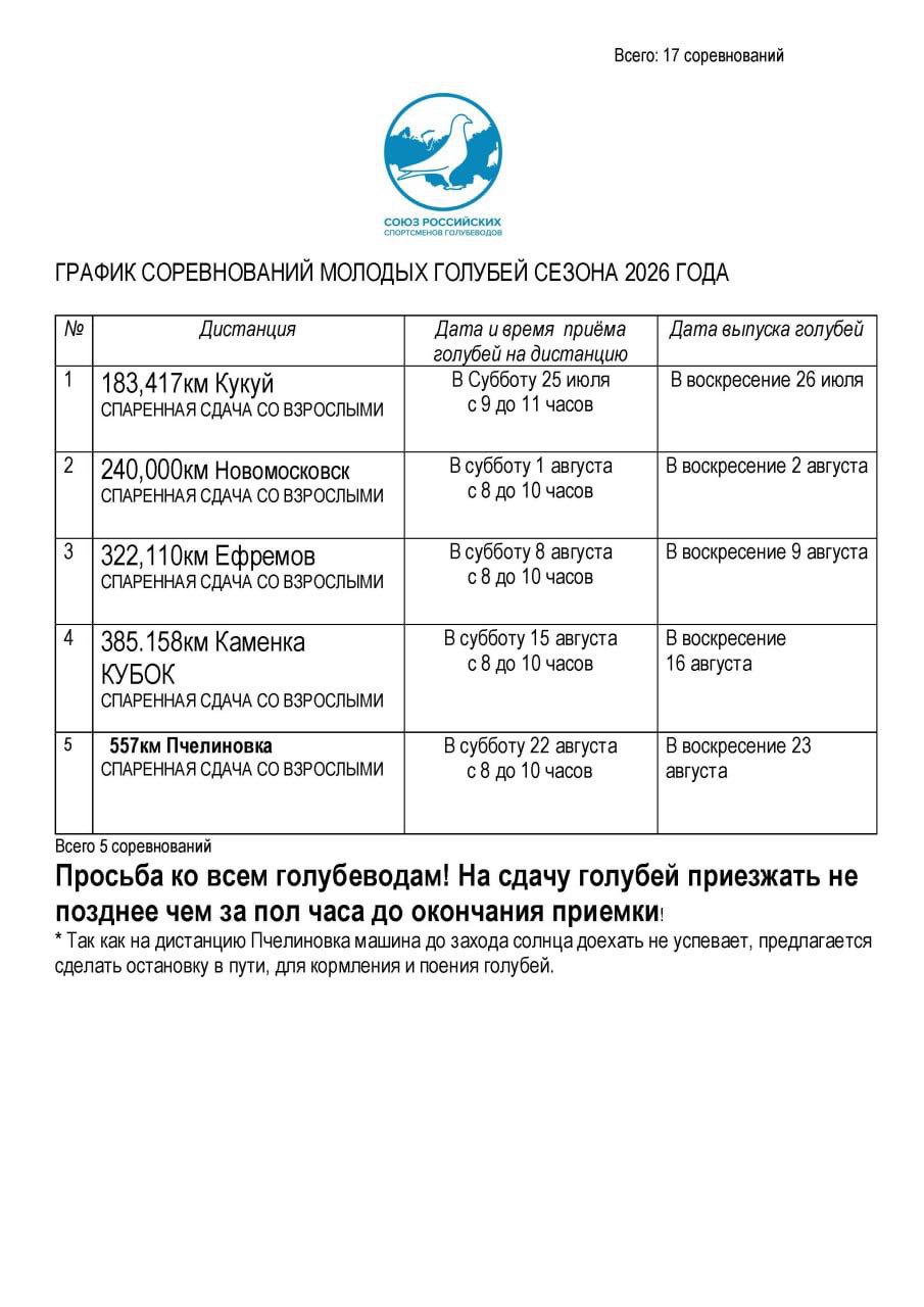 СОРЕВНОВАНИЯ 2025 года. Молодые голуби.